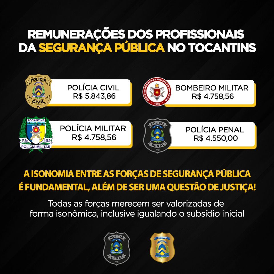 Todas as forças de Segurança Pública estão inseridas no artigo 114 da Constituição Estadual do Tocantins, por este motivo, todos desempenham um papel importante e indispensável para a sociedade, mas uma injustiça ainda é questionada: a isonomia salarial.