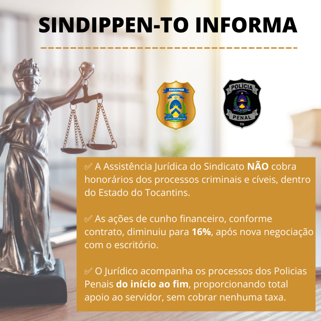 A Assistência Jurídica do Sindicato NÃO cobra honorários dos processos criminais e cíveis dentro do Estado do Tocantins. As ações de cunho financeiro, conforme contrato, diminuiu para 16%, após nova negociação com o escritório.